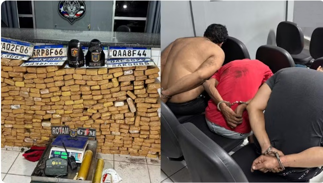 A droga estava escondida na carroceria e em compartimentos internos de duas caminhonetes localizadas dentro de uma residência da localidade. Na ocasião, três indivíduos foram presos.