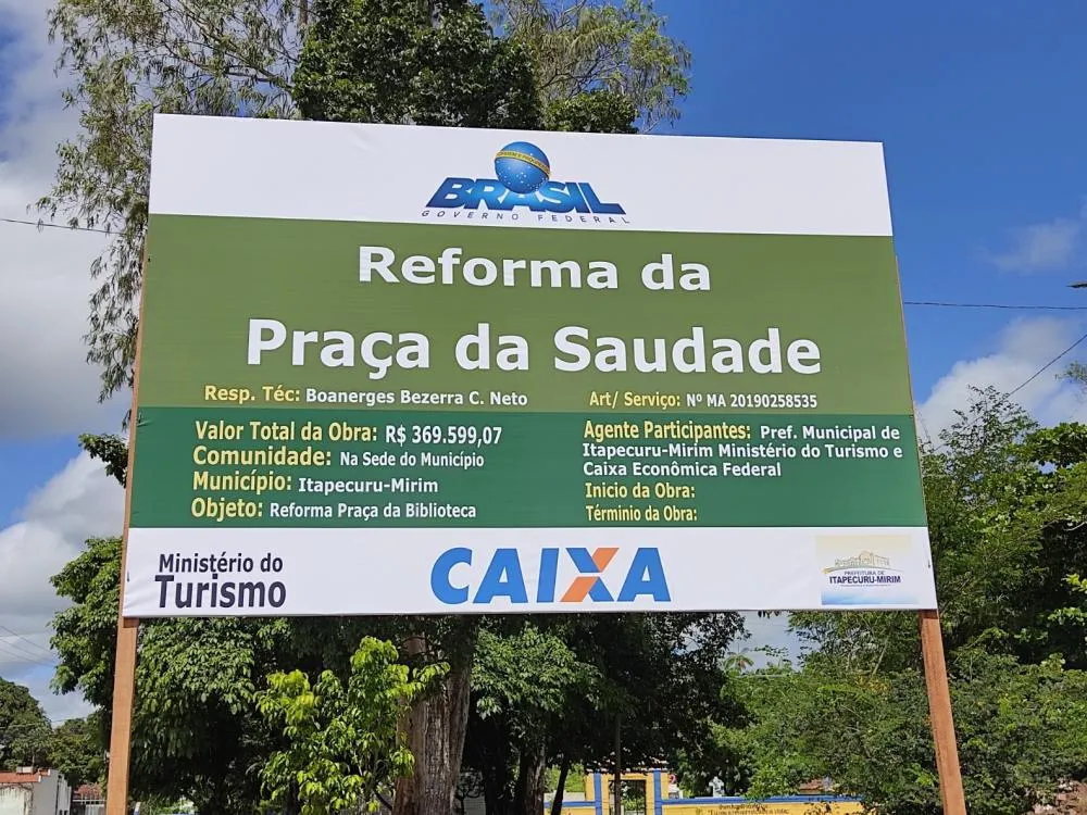 Reforma da Praça da Saudade, em Itapecuru-Mirim, é uma das obras federais paralisadas no Maranhão