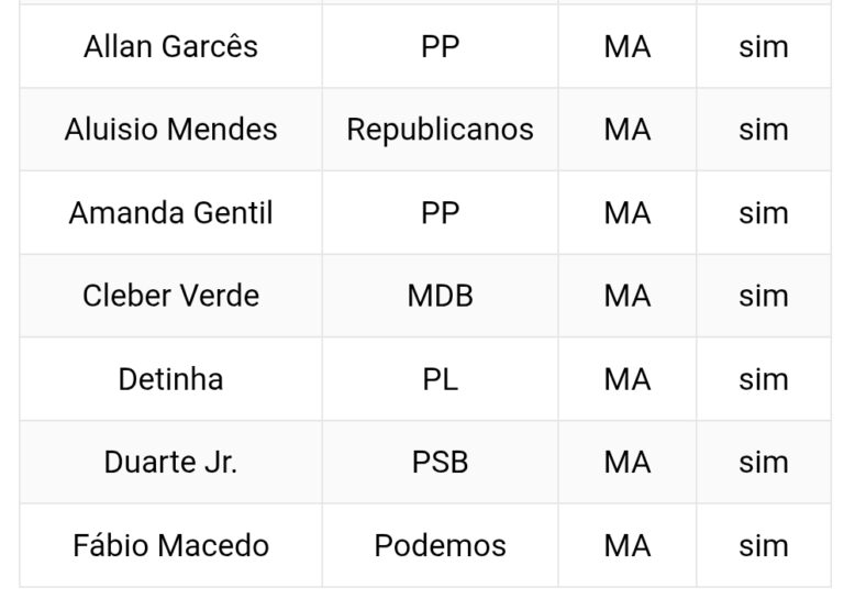 Segundo levantamento do Poder 360, dos 18 deputados maranhenses na Casa, 12 manifestaram-se a favor do texto, e apenas o deputado Márcio Jerry (PCdoB) foi contra. Outros cinco parlamentares não votaram.
