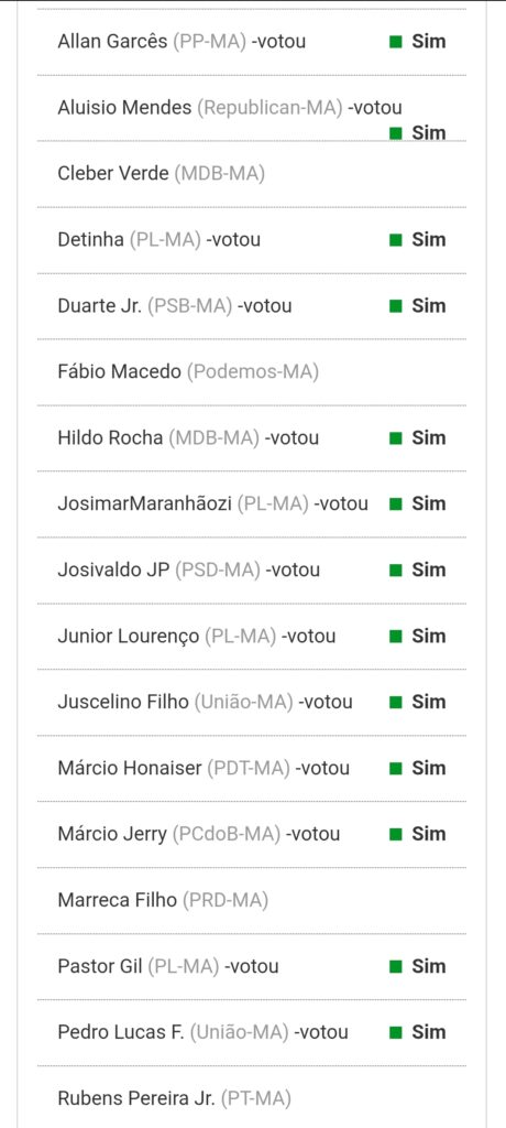 Dos 18 deputados federais do Maranhão, 13 participaram da votação. Entre os ausentes, Amanda Gentil está em licença-maternidade. Já Cleber Verde, Fábio Macedo, Marreca Filho e Rubens Pereira Júnior optaram por votar contra ou não registraram voto.