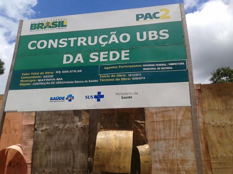 Financiada com recursos do Programa de Aceleração do Crescimento (PAC), a obra de construção de Unidade Básica de Saúde (UBS), no município maranhense de Matinha, encontra-se atrasada por que os serviços estão paralisados há um ano.