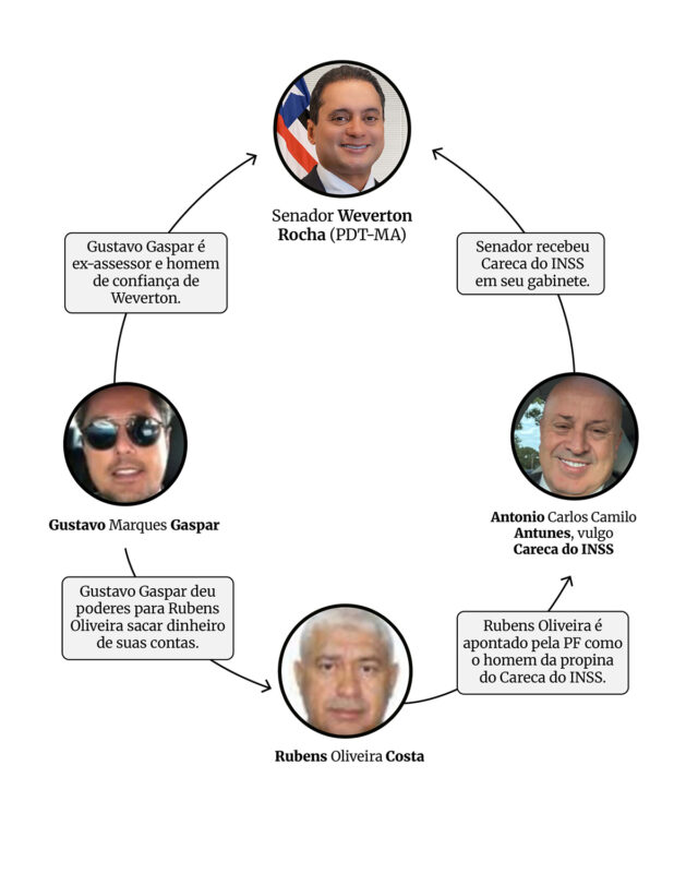 Homem de confiança do senador Weverton (PDT-MA), o empresário Gustavo Marques Gaspar assinou documento que dá poderes ao consultor Rubens Oliveira Costa, apontado pela Polícia Federal (PF) como o “carregador de mala” do lobista Antonio Carlos Camilo Antunes, o Careca do INSS.