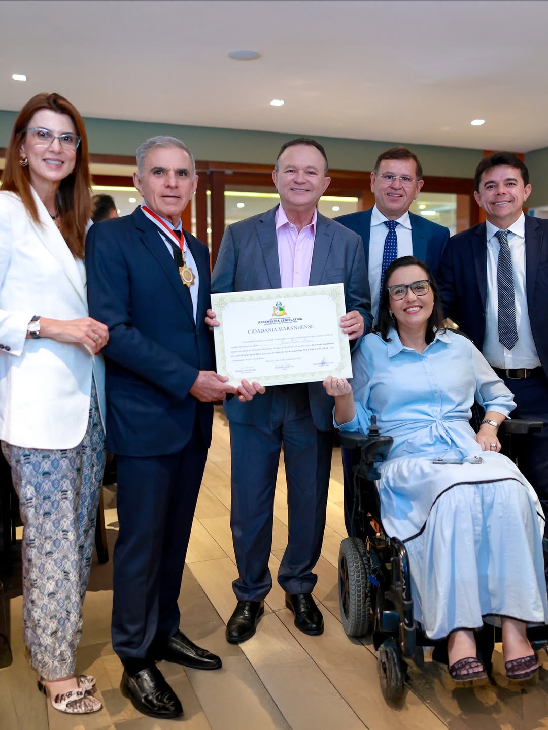 Em reconhecimento à contribuição ao desenvolvimento econômico e social do Maranhão, o empresário foi agraciado com a Medalha Manoel Beckman e o Título de Cidadão Maranhense. A presidente Iracema Vale presidiu a solenidade, proposta pela deputada Andreia Rezende.